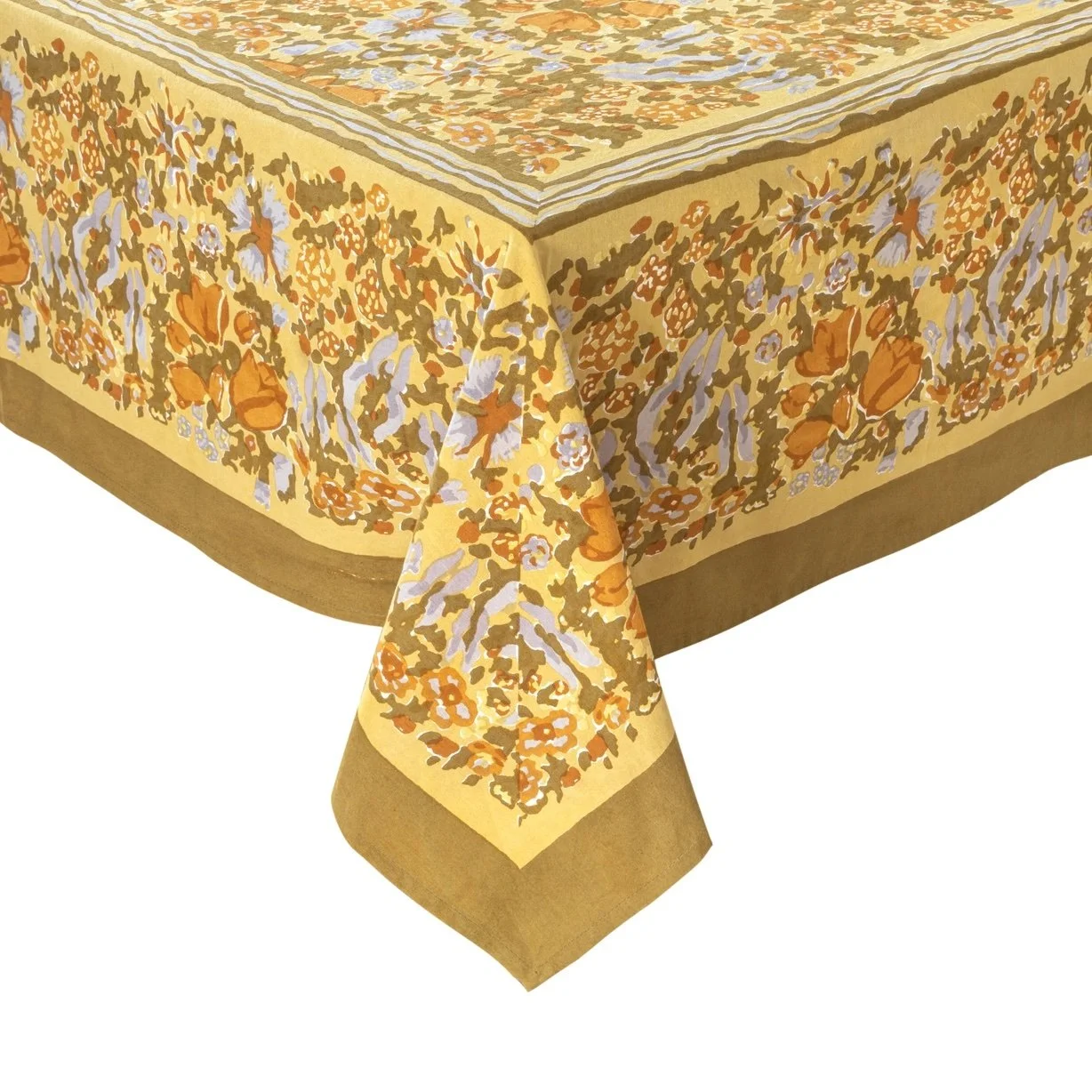 This tablecloth has been carefully handprinted by skilled artisans using a time-honored technique, resulting in a singular piece of craftsmanship. All these handmade French linens naturally feature slight variations, making each one subtly unique/