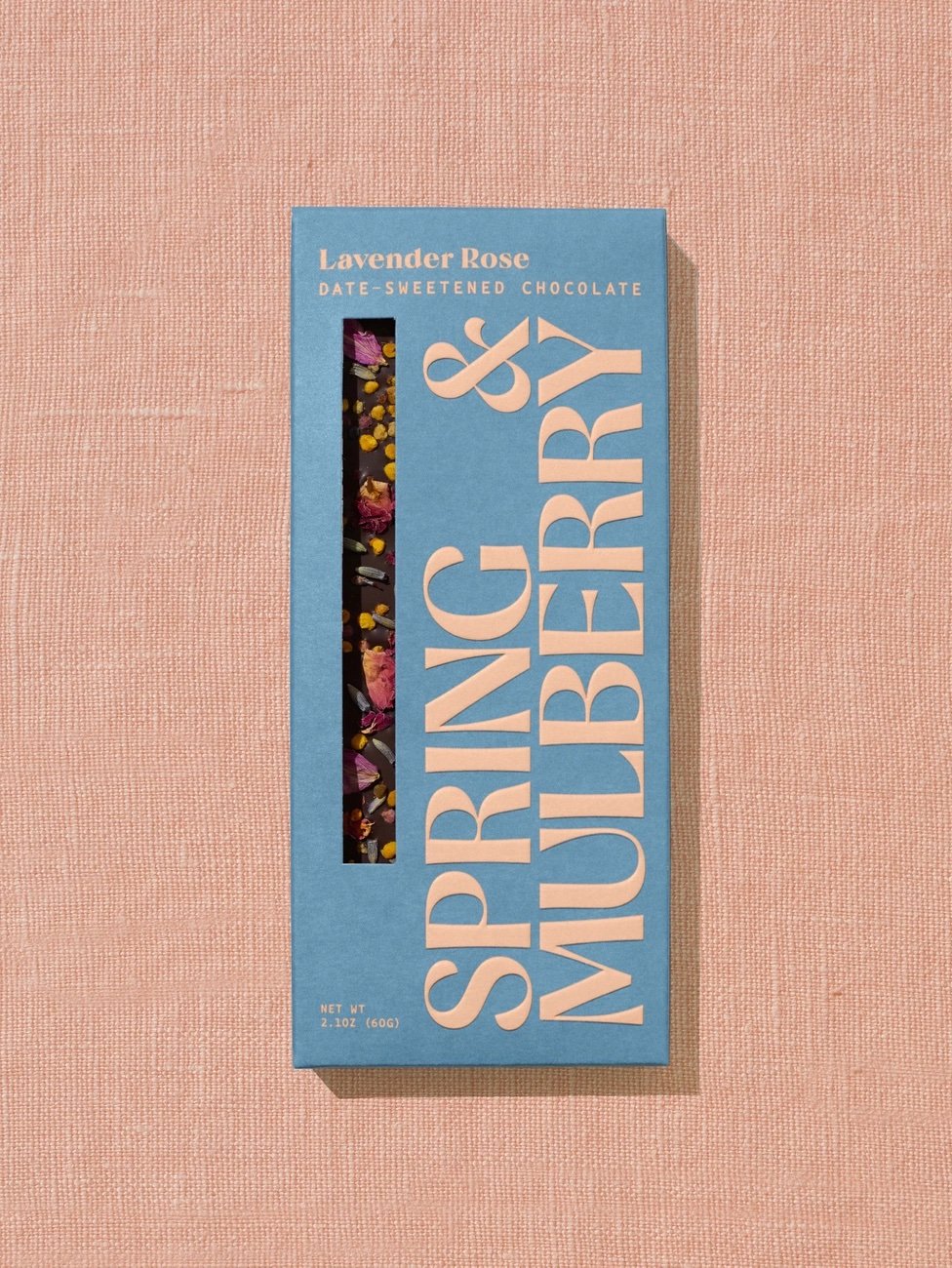 A fragrant trio of English lavender, Jacobsen bee pollen, and hand-picked rose petals come together with the richness of our date-sweetened dark chocolate to create a calming, subtly sweet treat reminiscent of spring, all with 0g added sugar.