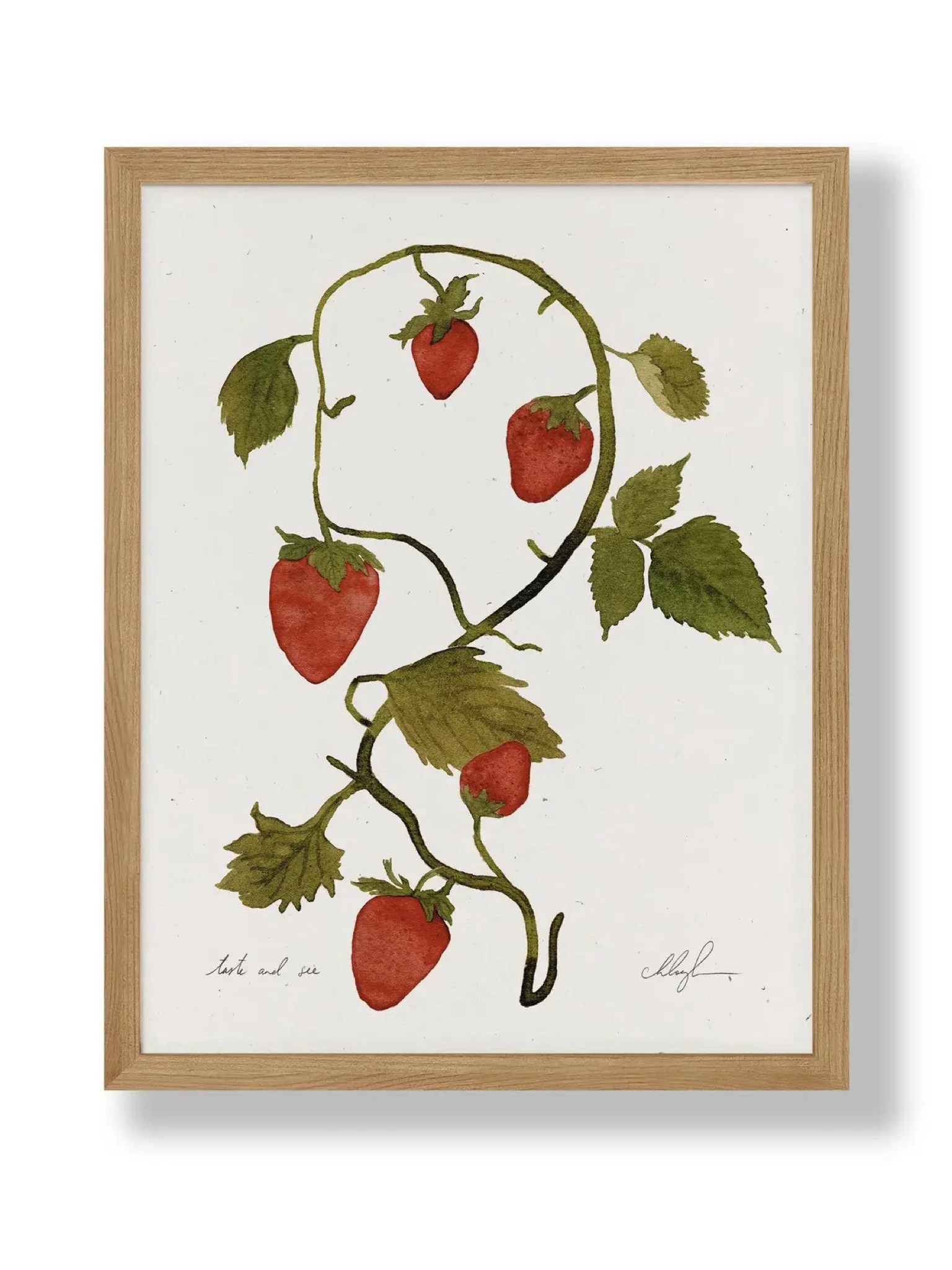 Give your walls something special with this lovely hand-drawn strawberry art print, entitled “Taste & See”. Made from 100% recycled content, the paper features unique fiber flecking throughout. Chloe makes art in her Charleston, SC studio.